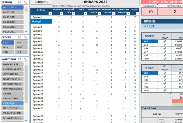 Эффективность работы текущих арендаторов и оптимизацию brand mix